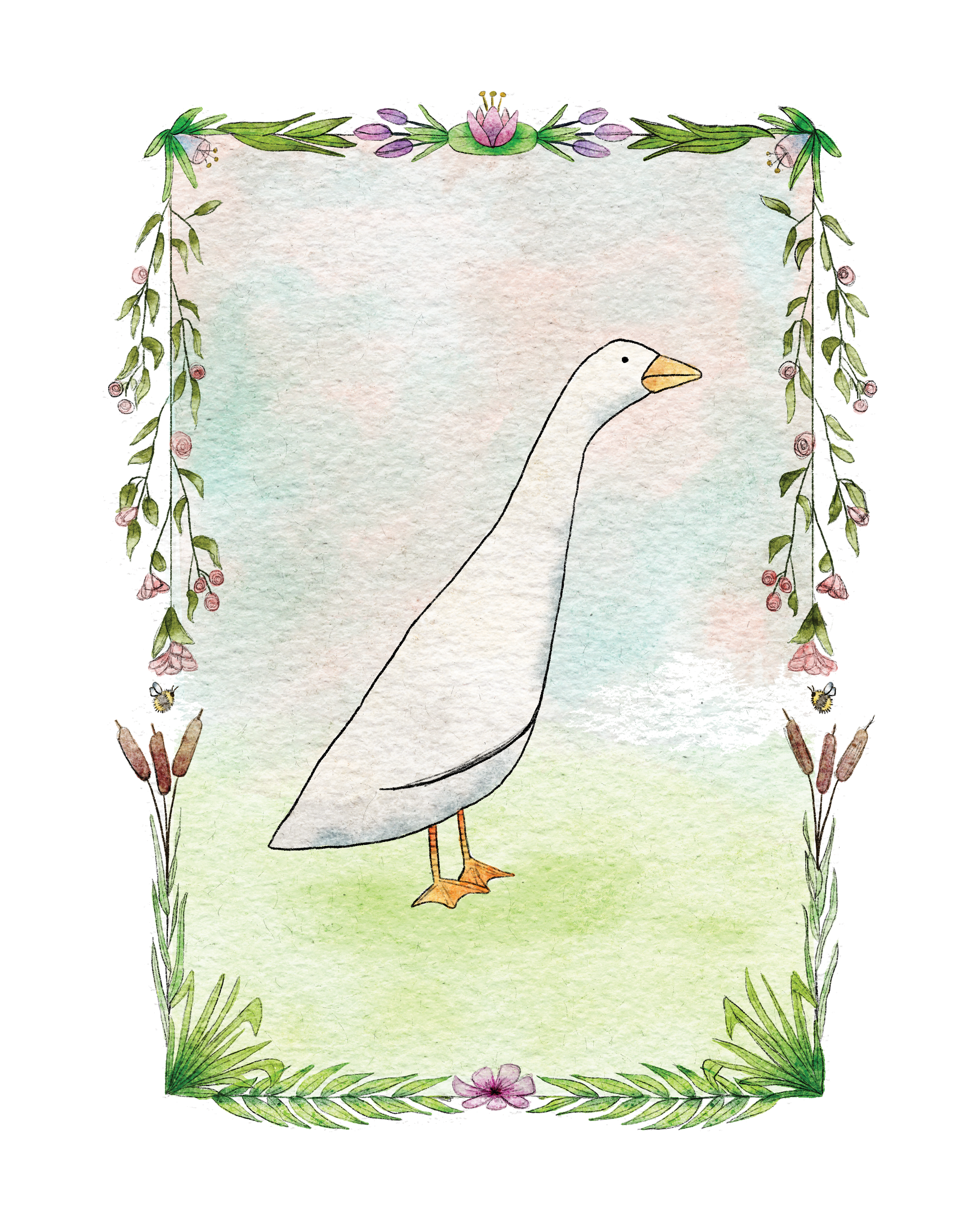 *a goose is framed by flowers